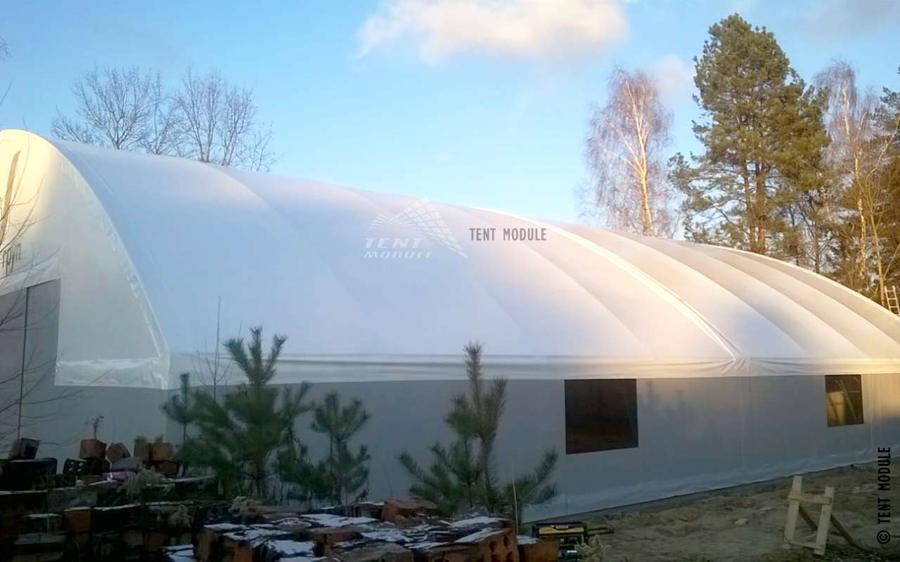 - Тип: каркасно-тентова споруда з одним шаром тентового покриття.